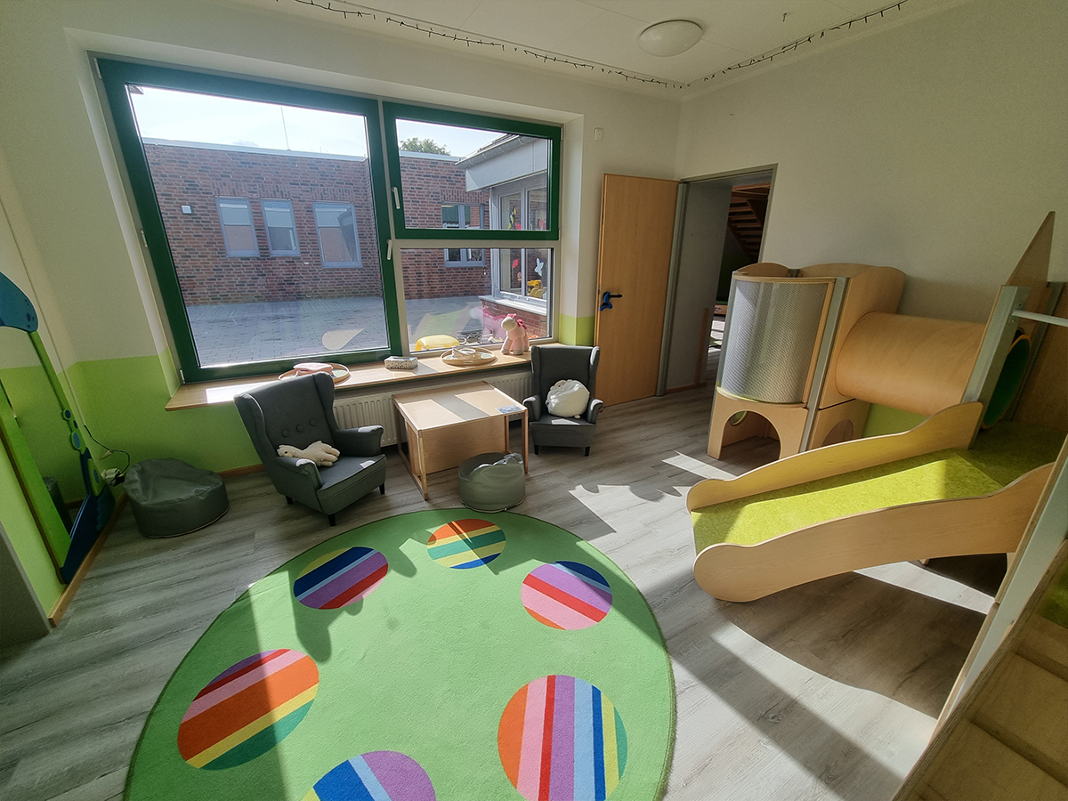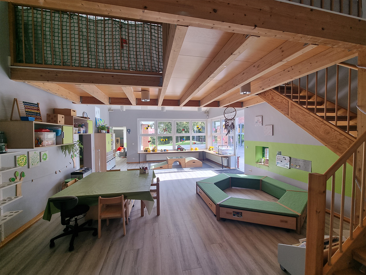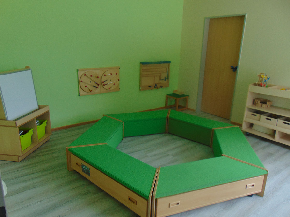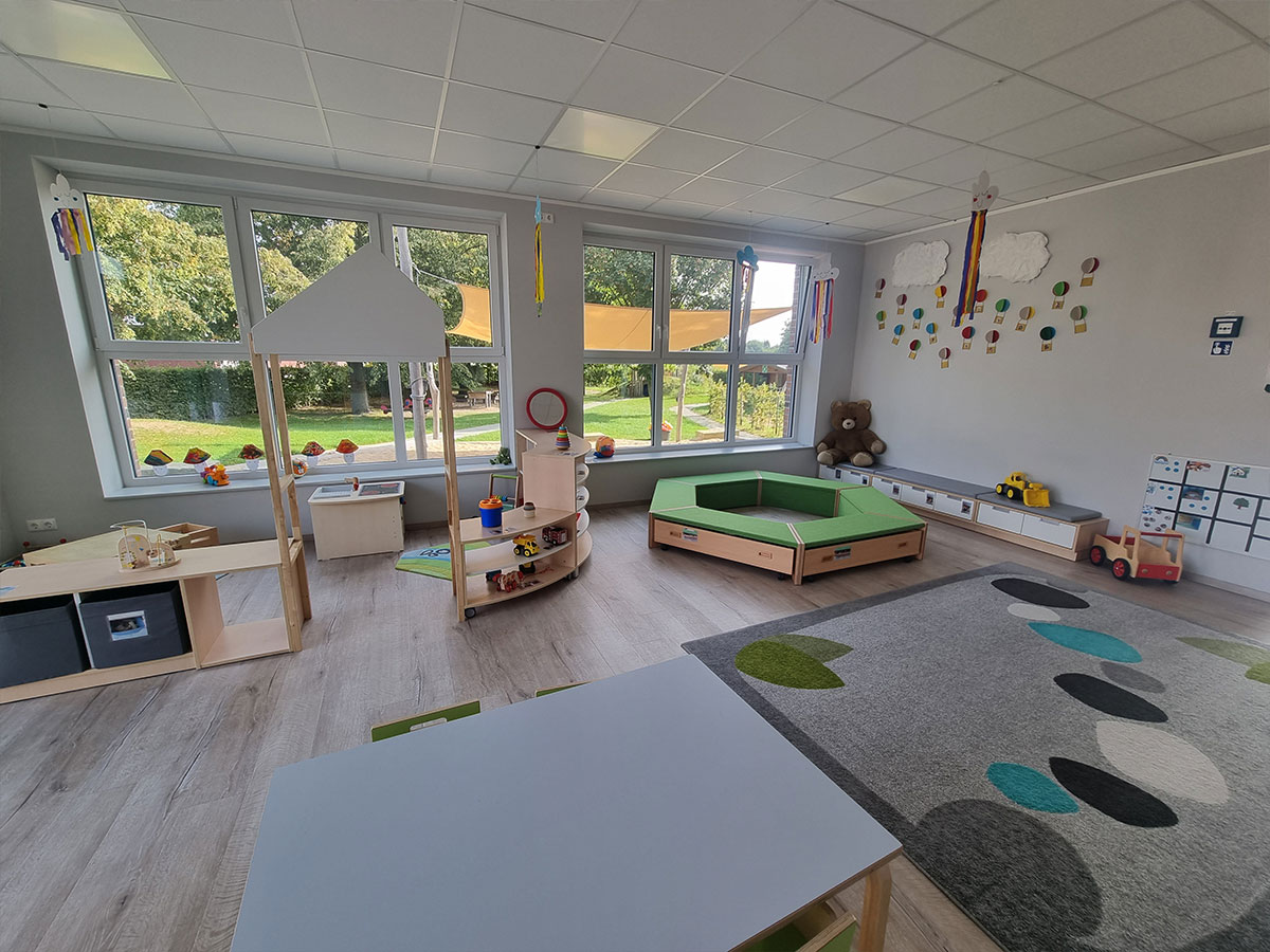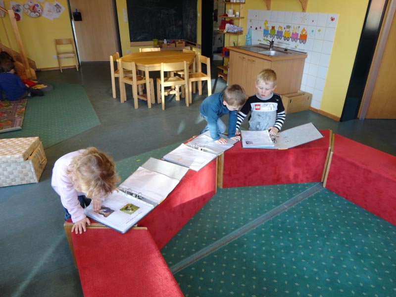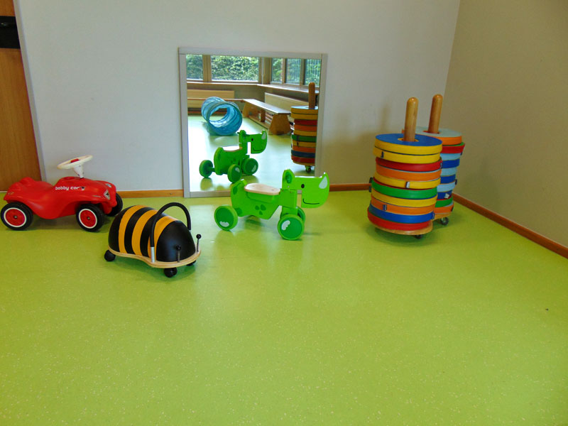 Aufgrund der somit großräumigen Spielfläche ist es den Kindern so besser möglich, ihre persönlichen oder körperlichen Bedürfnisse, wie z.B. ihren Bewegungsdrang, ihr Bedürfnis nach Ruhe und Entspannung etc. auszuleben, ohne dabei mit den Bedürfnissen der Anderen stets zu kollidieren. Die Räume sind mit ihren Spielecken so gestaltet, dass die Kinder den jeweiligen Aufforderungsgehalt aufgreifen und in ihrem Spiel umsetzen können (z.B. Räume die zum Toben auffordern sind auch als Toberäume zugelassen).