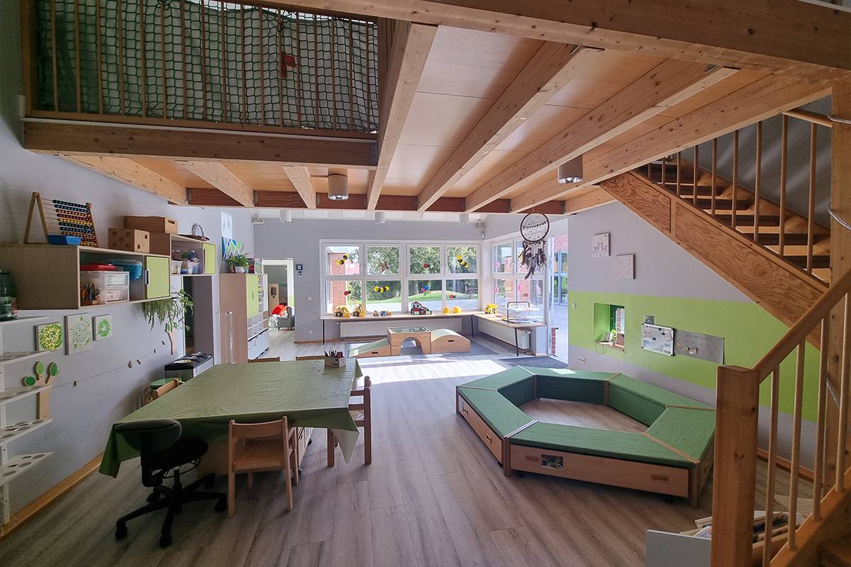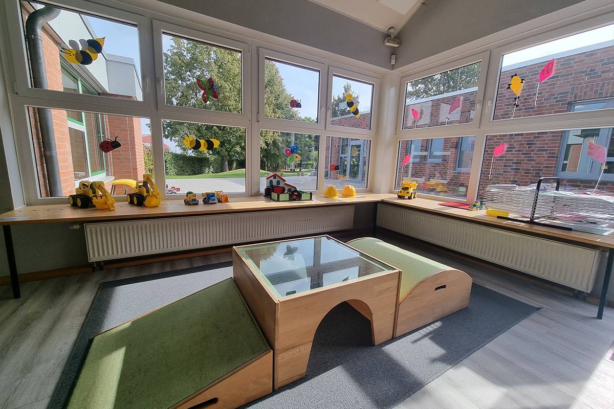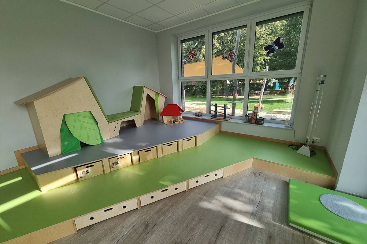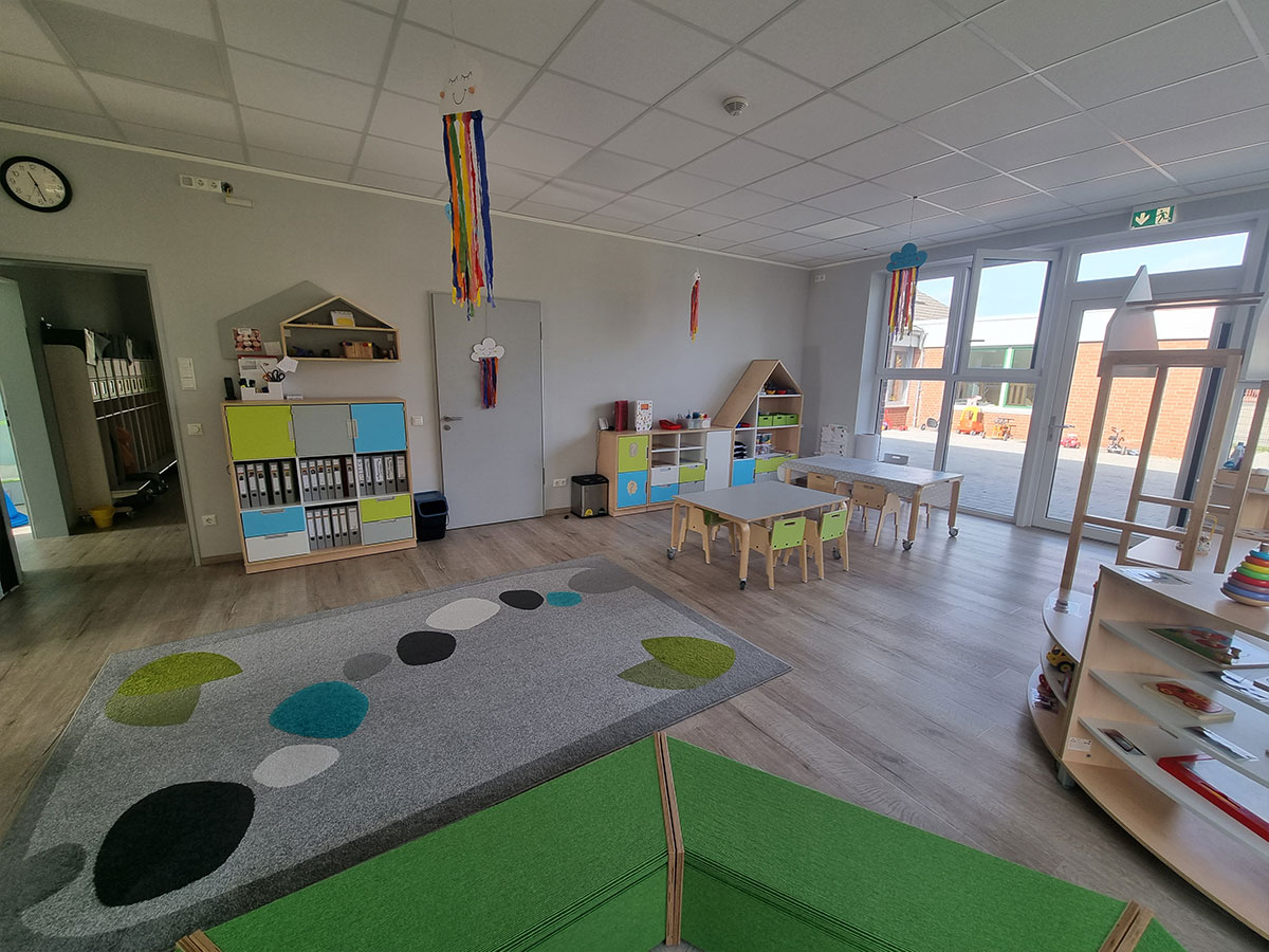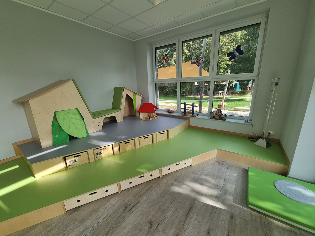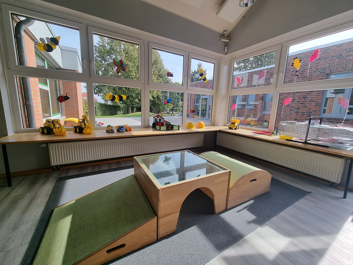 Aufgrund der somit großräumigen Spielfläche ist es den Kindern so besser möglich, ihre persönlichen oder körperlichen Bedürfnisse, wie z.B. ihren Bewegungsdrang, ihr Bedürfnis nach Ruhe und Entspannung etc. auszuleben, ohne dabei mit den Bedürfnissen der Anderen stets zu kollidieren. Die Räume sind mit ihren Spielecken so gestaltet, dass die Kinder den jeweiligen Aufforderungsgehalt aufgreifen und in ihrem Spiel umsetzen können (z.B. Räume die zum Toben auffordern sind auch als Toberäume zugelassen).