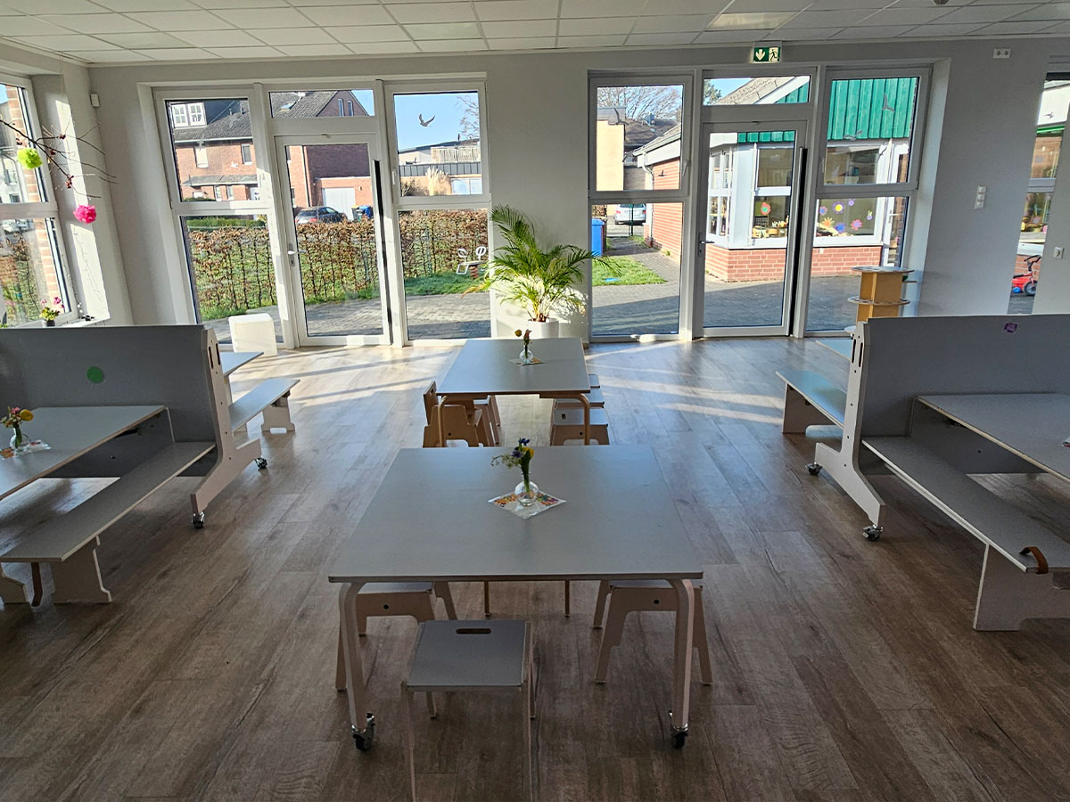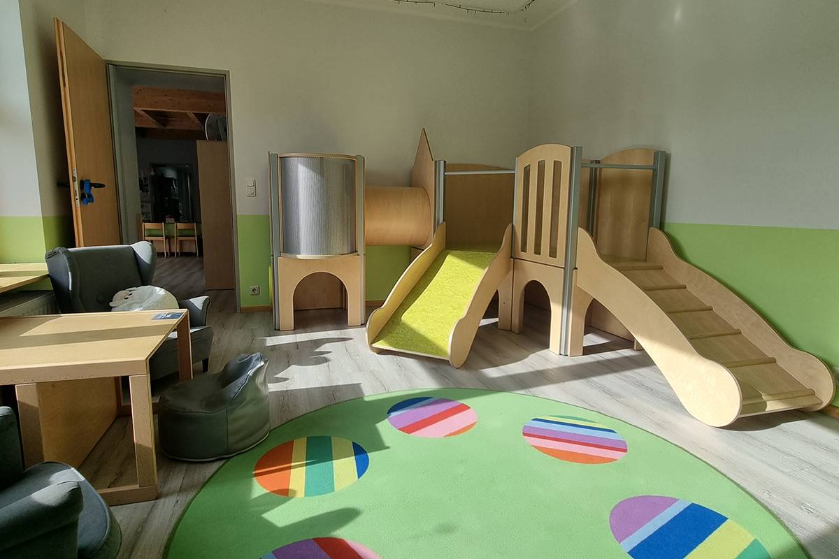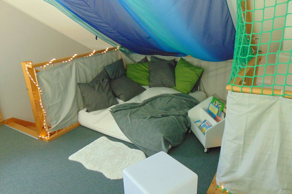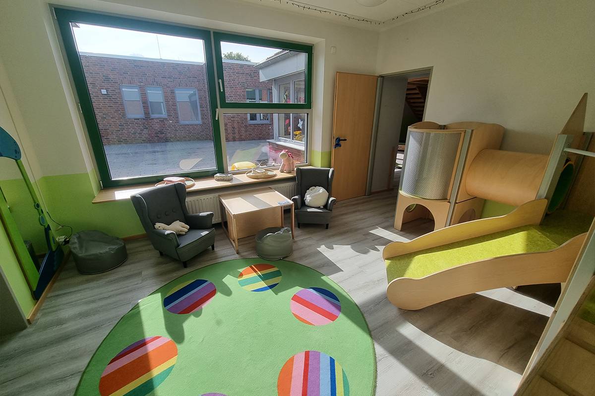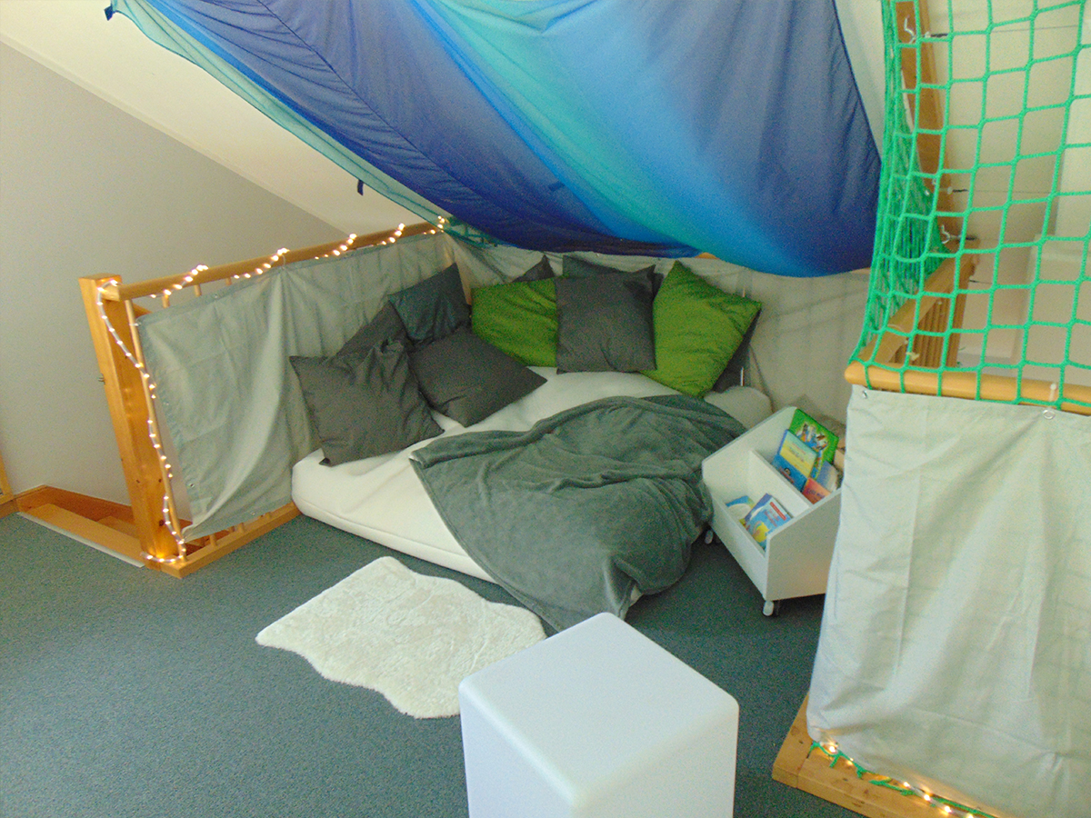 Aufgrund der somit großräumigen Spielfläche ist es den Kindern so besser möglich, ihre persönlichen oder körperlichen Bedürfnisse, wie z.B. ihren Bewegungsdrang, ihr Bedürfnis nach Ruhe und Entspannung etc. auszuleben, ohne dabei mit den Bedürfnissen der Anderen stets zu kollidieren. Die Räume sind mit ihren Spielecken so gestaltet, dass die Kinder den jeweiligen Aufforderungsgehalt aufgreifen und in ihrem Spiel umsetzen können (z.B. Räume die zum Toben auffordern sind auch als Toberäume zugelassen).