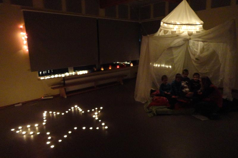 Die Vorweihnachtszeit genießen wir in vollen Zügen, so auch die Vorleseabende, die für Kinder ab 4 Jahren angeboten werden. Extra dafür bauen wir einen großen Baldachin auf, der von einem Lichtermeer erhellt wird. Darin gemütlich gemacht lesen wir ein Buch, im Anschluss wird etwas dazu gebastelt und den Abschluss bildet das gemeinsame Abendbrot.