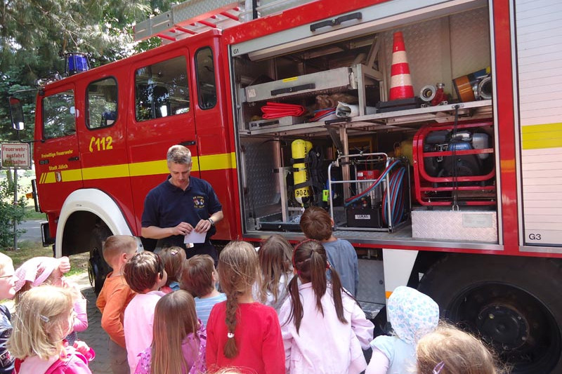 Das Letzte Jahr ist für die Vorschulkinder ein Besonderes Jahr in dem wir ihnen auch einzigartige Ausflüge bieten. So besuchen wir die Feuerwehr und Polizei, die mit den Kindern auch das Bordsteintraining übt. Den Abschluss des Jahres bildet die Übernachtung im Kindergarten mit anschließendem Frühstück mit der Familie.