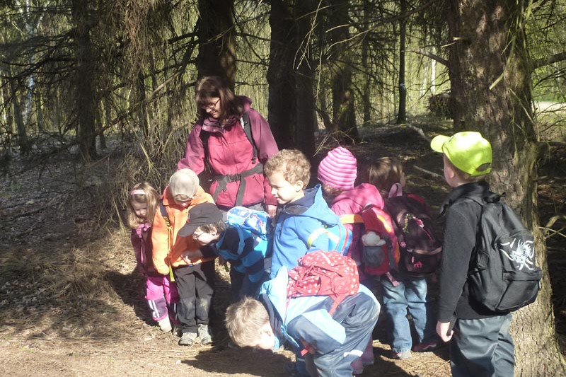 Die Kinder haben ein bis zweimal im Jahr die Möglichkeit an mehreren altershomogenen Waldexkursion mit einer ausgebildeten Waldpädagogin teilzunehmen.