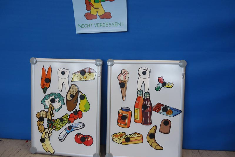 Wir arbeiten mit dem Arbeitskreis Zahngesundheit zusammen, die uns mit Zahnbürsten und –pasta versorgen, aber uns auch jährlich für die Zahnprophylaxe mit dem Zahnmobil besuchen.